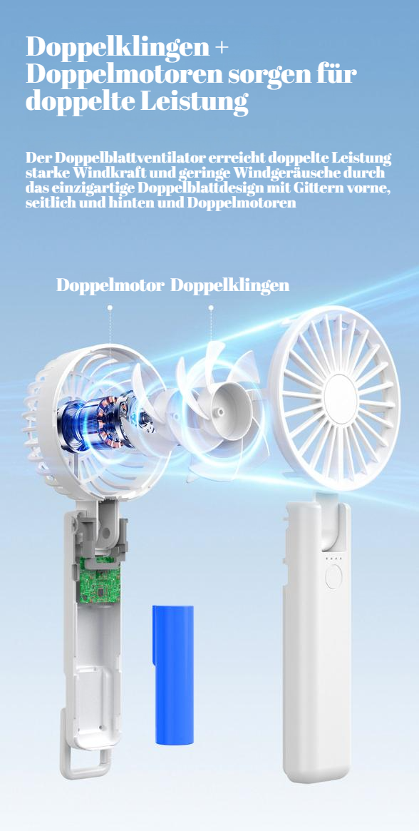 YL09 Doppelblatt-Handventilator zum Aufhängen am Hals, Mini-Ventilator, multifunktionaler USB-Ventil